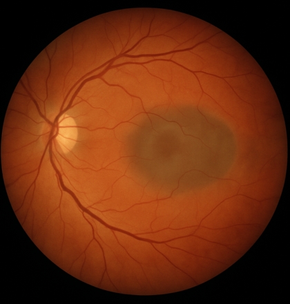 Área escura ou distorcida no centro da visão